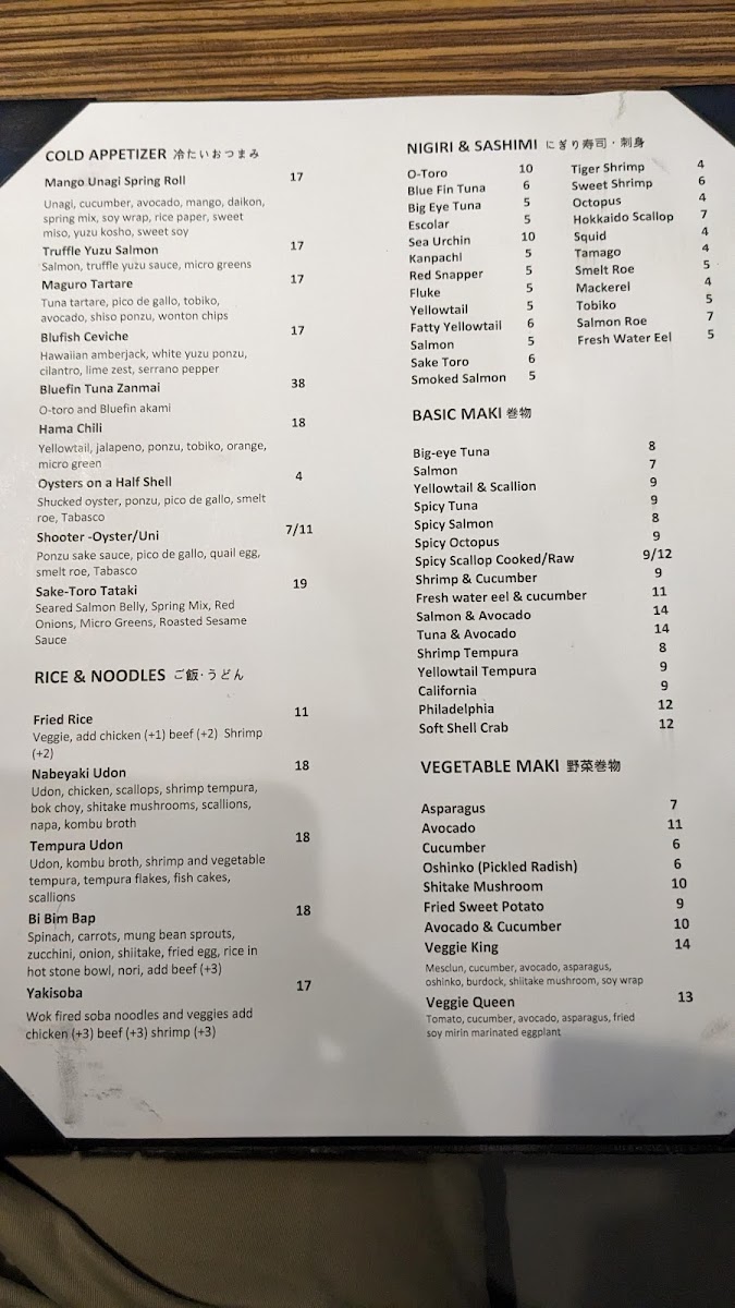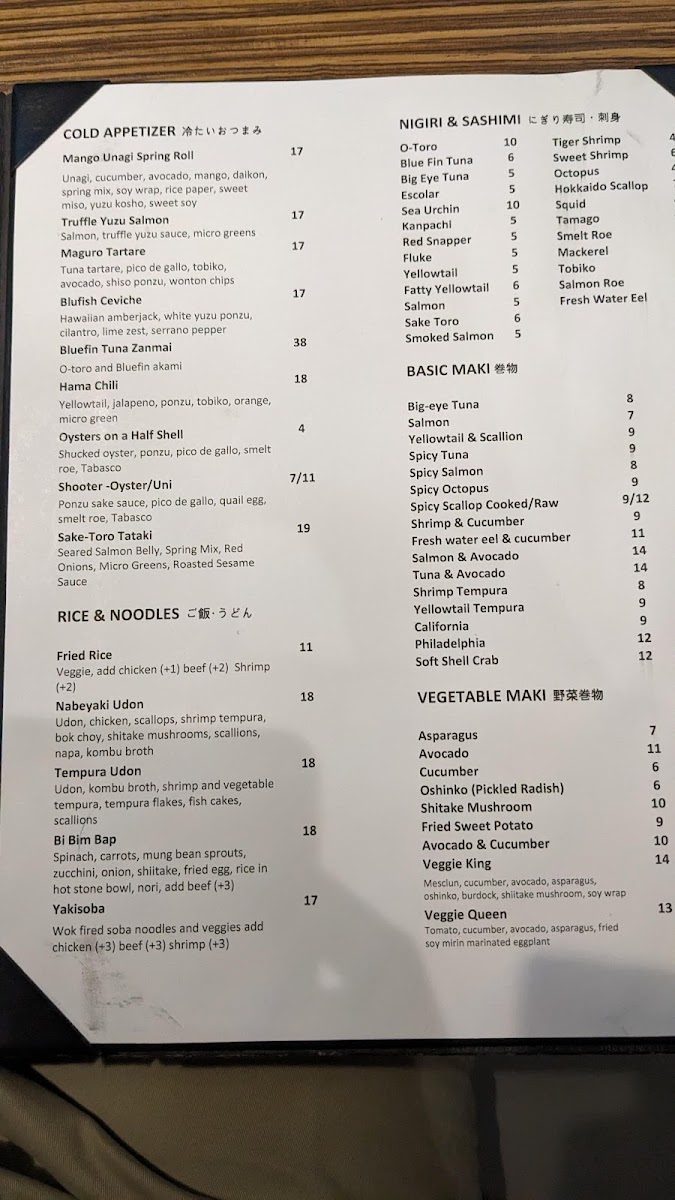 Poke Tuna Crunch, Yuzu Miso Salmon, Summer Hamachi, California Crunch